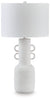 Recalling the texture of antique pottery, this table lamp incorporates a casual-meets-coastal feel into your decor. Its softly shaped silhouette is decorated in an ombre-style white and navy blue finish. Place it next to your sofa or bedside for a charming take on everyday illumination.
