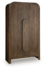 Store in style with this accent cabinet. Dressed in versatile natural brown and black finishes, it seamlessly suits spaces from casual to modern. An arched profile elevates the look and feel. Whether it's used to display your favorite dishware or as a handsome makeshift pantry in small spaces, this cabinet makes a chic impression.