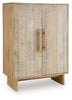 Indulge in functional elegance with this accent cabinet. It showcases the natural beauty of mango wood, with gracefully rounded corners creating a softened, welcoming profile. A medium brown finish brings an air of warmth and authenticity to your living space. And behind two soft-close doors, an assortment of shelves offers versatile storage.