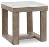 This coffee table is simple in design but big on style. Finished with a trend-right grayish brown wood tone, its bold, blocky profile and natural marble top are timeless classic choices that work so well with large sectional family room settings. Adding to its beauty, the marble top's color variations, fissures, mineral deposits and veining are naturally formed and are not defects.