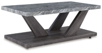 Live in luxurious harmony (without breaking the bank) when you stage this table set in your seating area. Dynamic weathered gray bases act as the foundation for faux gray marble tops. Très chic. Your contemporary living room has never been so stylishly coordinated. And for must-have function, the coffee table's built-in casters have you covered.