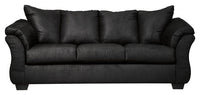 Talk about fine lines and great curves. That's the beauty of this standout sofa made to suit your appreciation for clean, contemporary style. A striking flared frame, comfy pillow top armrests and an ultra-soft upholstery that holds up to everyday living complete this fashion statement.