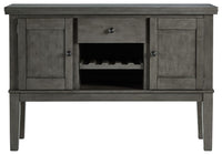 Cool and on-trend. This versatile server sports an antiqued gray color for a contemporary-yet-casual feel. The server features two cabinets, a smooth-gliding drawer and an open cubby with a wine rack, making it a breeze to clear away clutter and expand your serving space. Dining with friends and family has never been so stylish.
