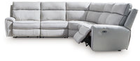 Social Pointe - 5-Piece Power Reclining Sectional - Pearl / Ash
